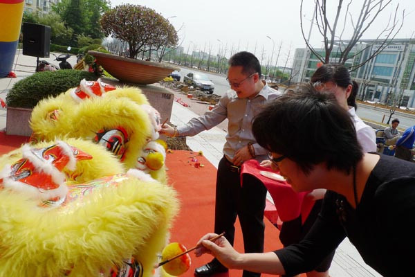 堂總和丁總為舞獅點(diǎn)金,寓意江寧旗艦店開業(yè)大吉