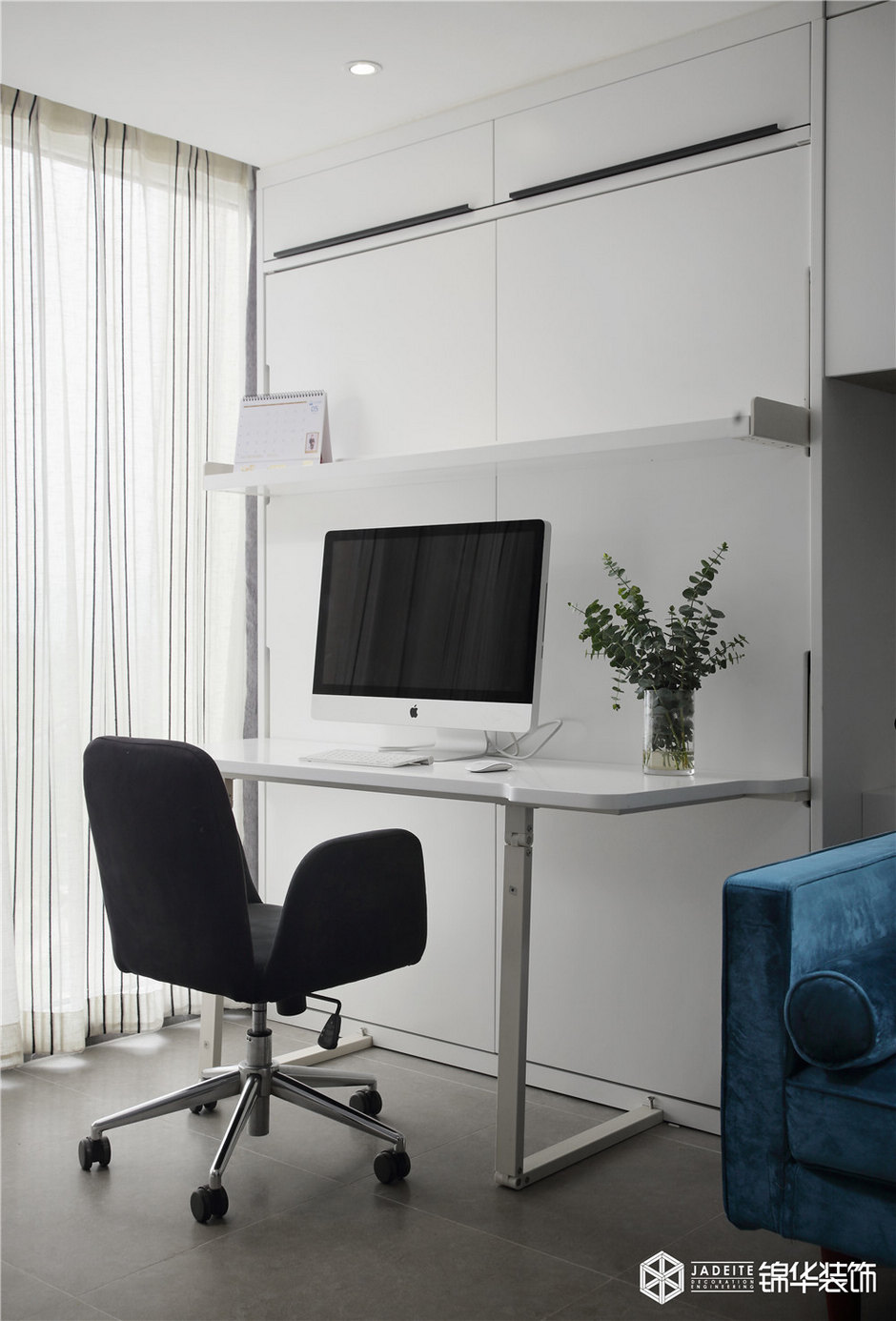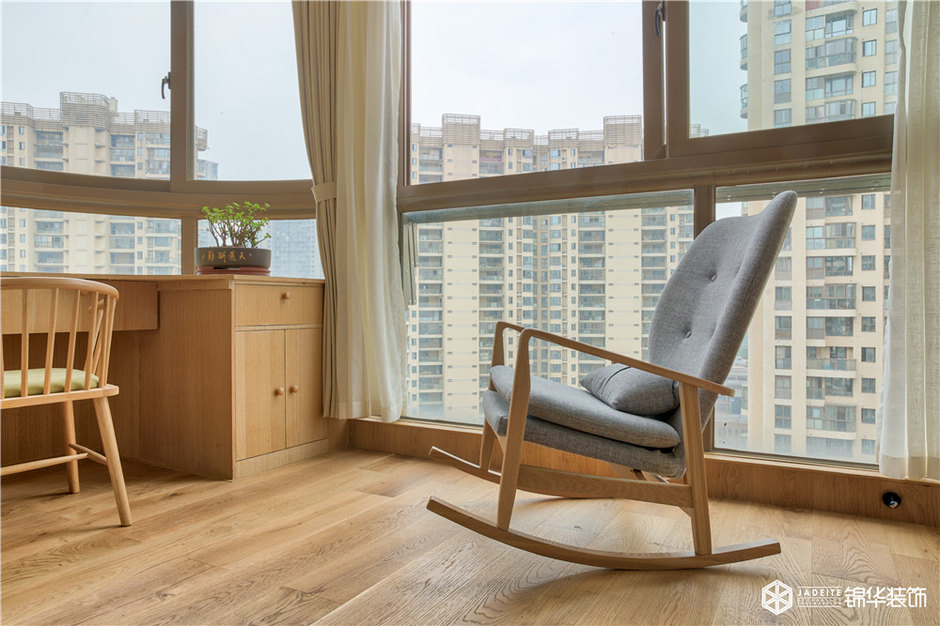 ▲陽臺(tái)制作了擱架書桌,業(yè)主偶爾回家時(shí),在臥室也能滿足看書或辦公的需要!