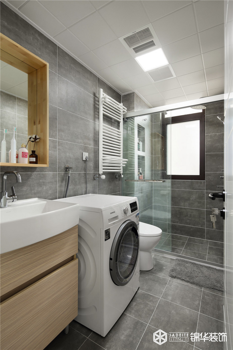 ▲衛(wèi)生間雖然不大,但設(shè)計(jì)師還是做了簡單的干濕分離,同時(shí)還能放下洗衣機(jī)!