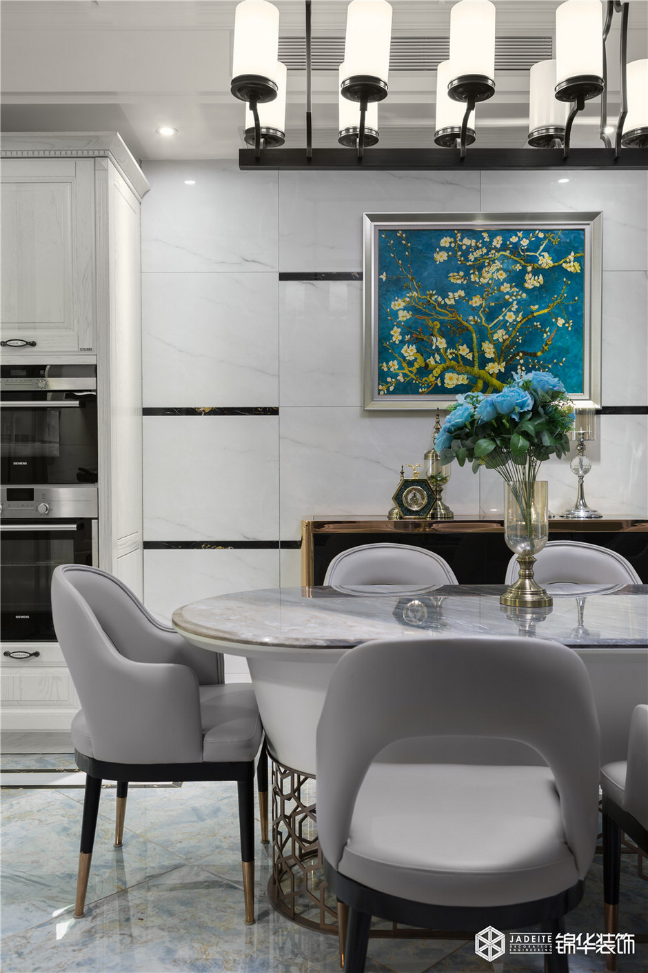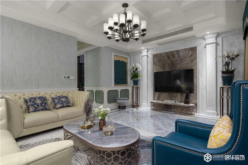 設計師:是的,業(yè)主那會看了挺多的效果圖以及實景照片,但沒有一個清晰的概念,說特別喜歡哪一個。巧的是,那會廣州正好有一個設計展和家具展,我們就去了。展會上,客戶特別喜歡一款沙發(fā)的樣式,所以我們就根據(jù)這個思路,找到了本案的設計風格——美式鄉(xiāng)村。